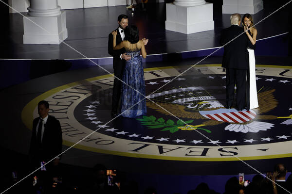 President Donald Trump dances with wife Melania and Vice President JD Vance and 2nd Lady Usha Vance dance at the Starlight Ball on January 20, 2025 in Washington, DC. President Trump attends some of the inaugural balls after taking the oath as the 47th president.