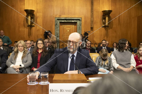 Russell Vought waits prior to giving testimony before the United States Senate Committee on the Budget on his nomination to be Director, Office of Management and Budget (OMB) in the Dirksen Senate Office Building on Capitol Hill