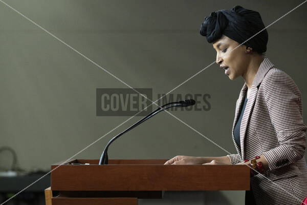 United States Representative Ilhan Omar (Democrat of Minnesota) makes a statement during a Congressional Progressive Caucus press conference calling for the repeal of the Alien Enemies Act in the US Capitol in Washington