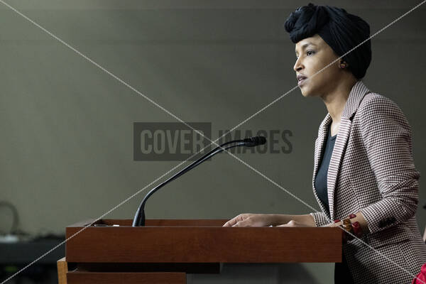 United States Representative Ilhan Omar (Democrat of Minnesota) makes a statement during a Congressional Progressive Caucus press conference calling for the repeal of the Alien Enemies Act in the US Capitol in Washington