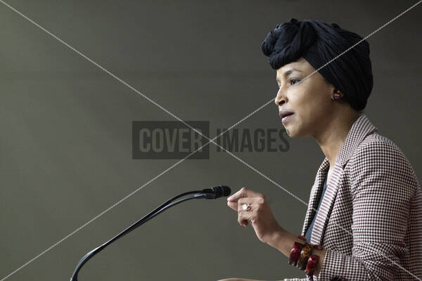 United States Representative Ilhan Omar (Democrat of Minnesota) makes a statement during a Congressional Progressive Caucus press conference calling for the repeal of the Alien Enemies Act in the US Capitol in Washington
