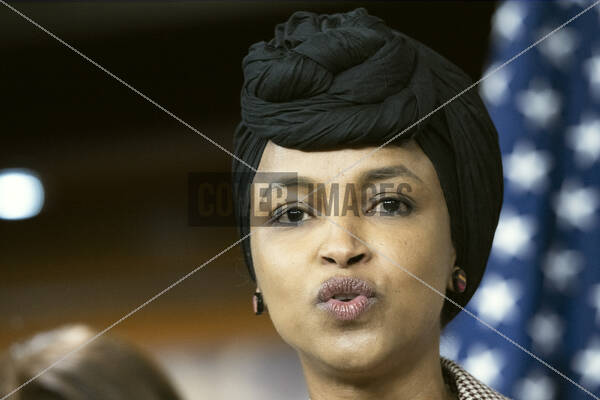 United States Representative Ilhan Omar (Democrat of Minnesota) makes a statement during a Congressional Progressive Caucus press conference calling for the repeal of the Alien Enemies Act in the US Capitol in Washington