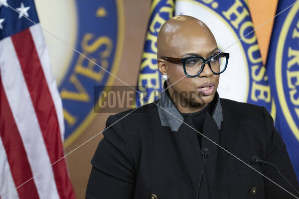 United States Representative Ayanna Pressley (Democrat of Massachusetts) makes a statement during a Congressional Progressive Caucus press conference calling for the repeal of the Alien Enemies Act in the US Capitol in Washington