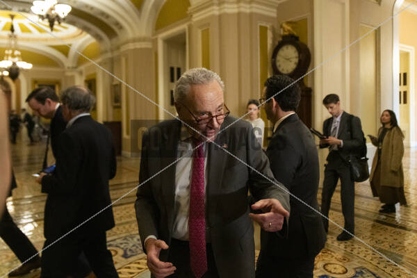 United States Senate Minority Leader Chuck Schumer (Democrat of New York) says “Go Bills!” Pointing to a reporter who had asked which team he supported currently, a press conference for the Senate Democratic Leadership Committee outside of the Senate Chamber in the Capitol, on Tuesday January 21, 2025.