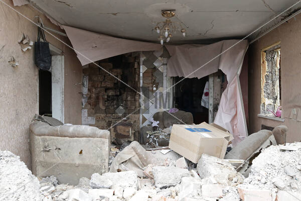 A room is in a house damaged by the Russian shelling in Yasnohirka village, Donetsk region, eastern Ukraine.