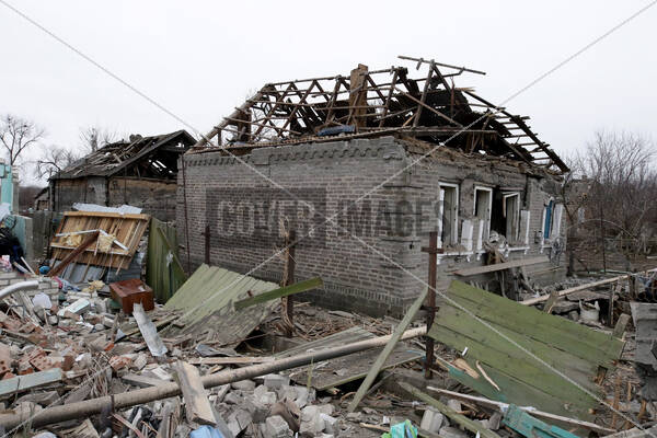 Houses are damaged by the Russian shelling, Yasnohirka village, Donetsk region, eastern Ukraine.