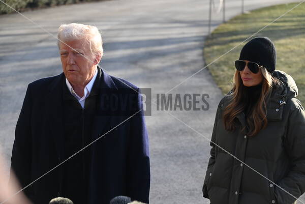United States President Donald J Trump speaks to reporters as he and first lady Melania Trump depart the South Lawn of the White House in Washington, DC to travel to North Carolina and California and Nevada