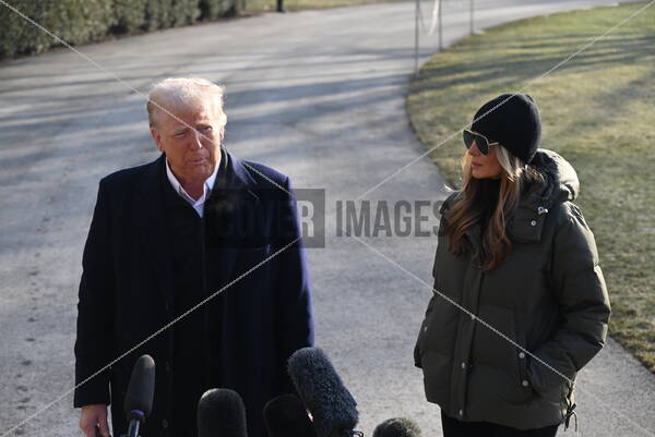 United States President Donald J Trump speaks to reporters as he and first lady Melania Trump depart the South Lawn of the White House in Washington, DC to travel to North Carolina and California and Nevada