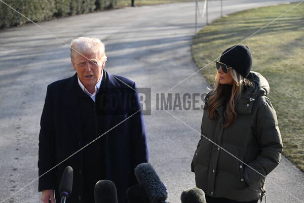 United States President Donald J Trump speaks to reporters as he and first lady Melania Trump depart the South Lawn of the White House in Washington, DC to travel to North Carolina and California and Nevada