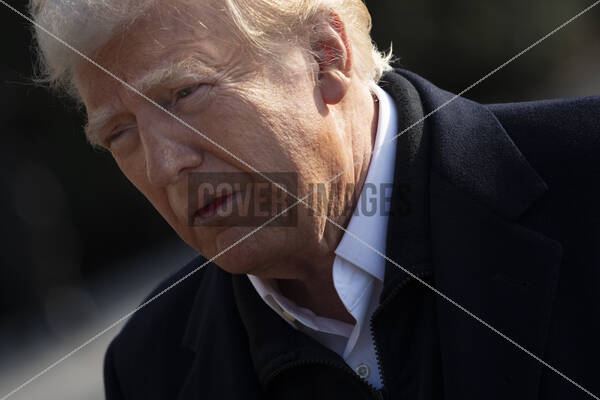 United States President President Donald J Trump speaks to the media as he departs the White House in Washington, DC on January 24, 2025 headed for a multi-day trip that includes stops in Asheville, NC, Santa Monica, CA, Las Vegas, NV and Miami, FL