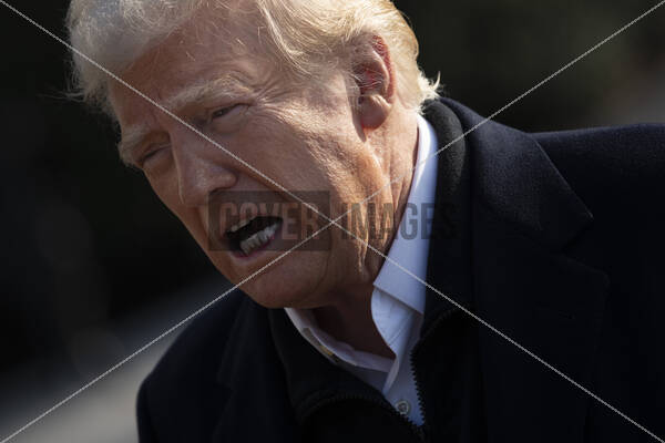 United States President President Donald J Trump speaks to the media as he departs the White House in Washington, DC on January 24, 2025 headed for a multi-day trip that includes stops in Asheville, NC, Santa Monica, CA, Las Vegas, NV and Miami, FL
