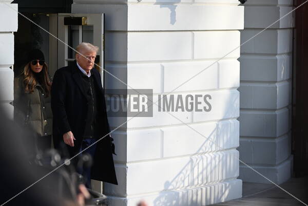 United States President Donald J Trump and first lady Melania Trump walk out of the Diplomatic Entrance as they depart the South Lawn of the White House in Washington, DC to travel to North Carolina and California and Nevada