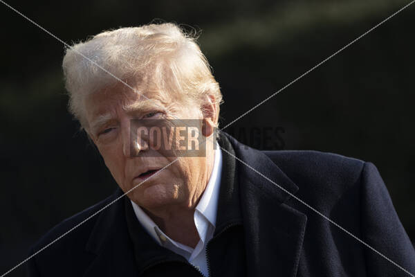 United States President President Donald J Trump speaks to the media as he departs the White House in Washington, DC on January 24, 2025 headed for a multi-day trip that includes stops in Asheville, NC, Santa Monica, CA, Las Vegas, NV and Miami, FL