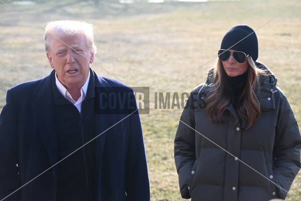 United States President Donald J Trump speaks to reporters as he and first lady Melania Trump depart the South Lawn of the White House in Washington, DC to travel to North Carolina and California and Nevada