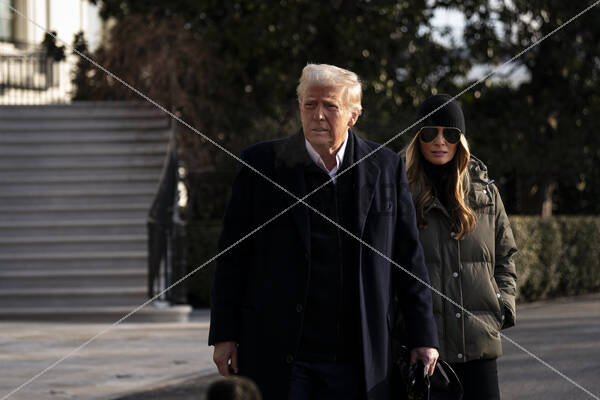 United States President Donald Trump departs the Diplomatic Entrance, with first lady Melania Trump on the South Lawn of the White House before boarding Marine One in Washington, DC, US, on Friday, Jan. 24, 2025. European officials are seeking commitments from the new US administration of President Donald Trump to take part in security guarantees for Ukraine as diplomatic pressure to end the Russian invasion mounts