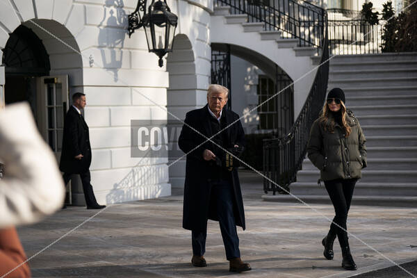 United States President Donald Trump departs the Diplomatic Entrance, with first lady Melania Trump on the South Lawn of the White House before boarding Marine One in Washington, DC, US, on Friday, Jan. 24, 2025. European officials are seeking commitments from the new US administration of President Donald Trump to take part in security guarantees for Ukraine as diplomatic pressure to end the Russian invasion mounts