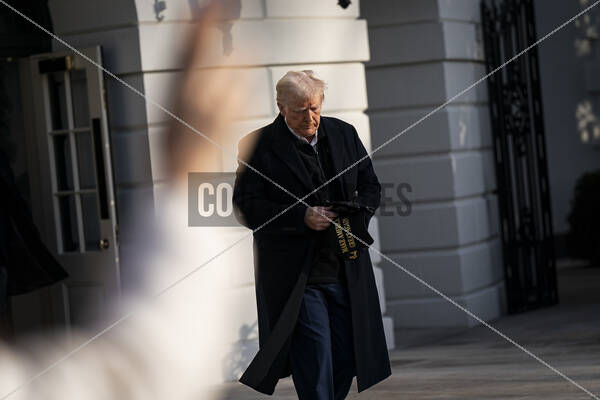 United States President Donald Trump walks to speak to members of the media on the South Lawn of the White House before boarding Marine One in Washington, DC, US, on Friday, Jan. 24, 2025. Trump will head to Los Angeles to survey wildfire damage after visiting North Carolina, which was recently hit by hurricanes