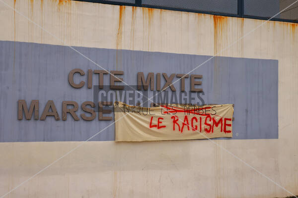 Headline: Protest at Marseille high school after racist tags found on walls