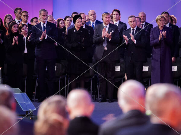 Keywords: Bevrijding,Grote groep mensen,Holocaust,Joden,Kamp,Musicus,Naziregime,OUDERE VOLWASSENE,Poolse,Tweede Wereldoorlog,Volwassene,Vrouw,WERELDLEIDERS,business,concentratiekamp,formele kleding,groep mensen,herdenking,jood,koor,mannen,menigte,overlevenden,persoon,plechtigheden,publiek,rota,rotapool,tachtig,volwassen,vrouwen,young adult,zakenman