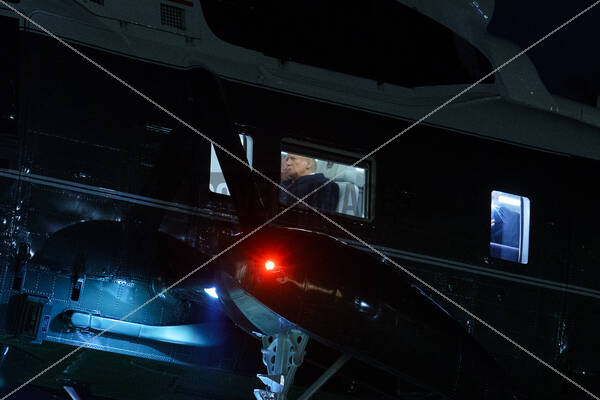 United States President Donald Trump in his seat aboard Marine One as he arrives on the South Lawn of the White House, Washington, DC, USA, 27 January 2025. Earlier in the day, President Trump delivered a speech at the 2025 US House Republican Members Conference Dinner