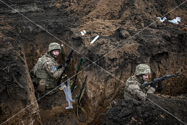 Soldiers of the 110th Territorial Defence Brigade are in the trench during a live fire exercise, Zaporizhzhia region, southeastern Ukraine