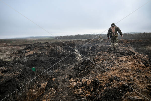 Soldiers of the 110th Territorial Defence Brigade are in the trench during a live fire exercise, Zaporizhzhia region, southeastern Ukraine