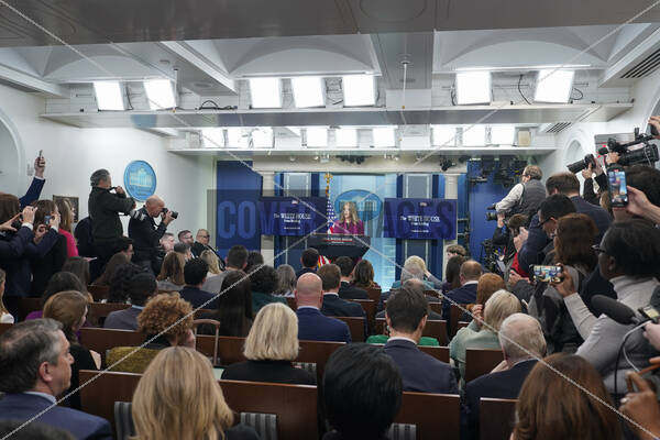 White House press secretary Karoline Leavitt participates in the daily briefing at the White House in Washington, DC