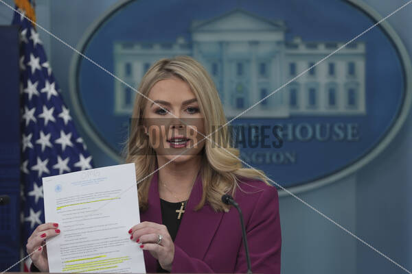 White House press secretary Karoline Leavitt participates in the daily briefing at the White House in Washington, DC