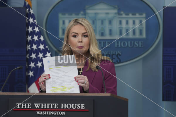 White House press secretary Karoline Leavitt participates in the daily briefing at the White House in Washington, DC