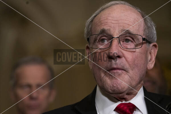 United States Senator Jim Risch (Republican of Idaho), Chair, US Senate Committee on Foreign Relations, speaks at a weekly Republican Senate Caucus meeting following luncheons, in front of the Senate Chamber, in Washington DC