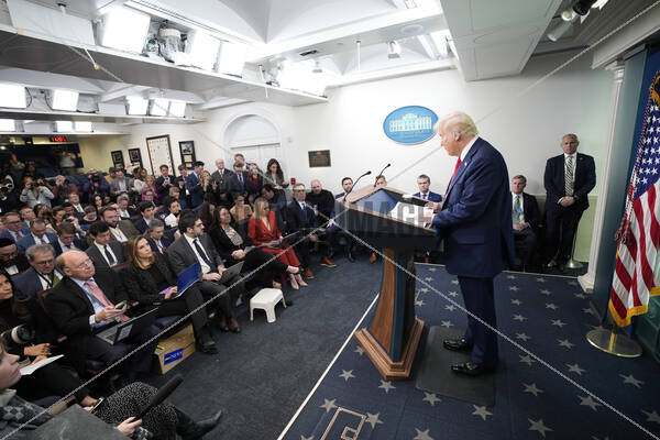 US President Donald Trump speaks about a collision involving an American Airlines passenger jet and an Army helicopter during a press briefing at the White House in Washington