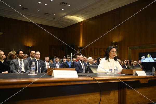 Tulsi Gabbard, Director of National Intelligence (DNI) listens to questioning from United States Senator Mark Warner (Democrat of Virginia) during the Senate Judiciary hearing concerning her nomination to be Director of National Intelligence in the Hart Senate Office Building