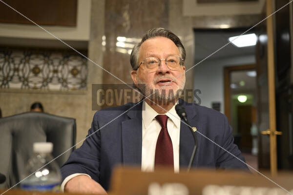 United States Senator Gary Peters (Democrat of Michigan) questions Secretary of the Army, Department of Defense-designate Daniel Driscoll, during the Senate Armed Services hearing to examine his nomination, to be Secretary of the Army, Department of Defense in the Dirksen Senate office building