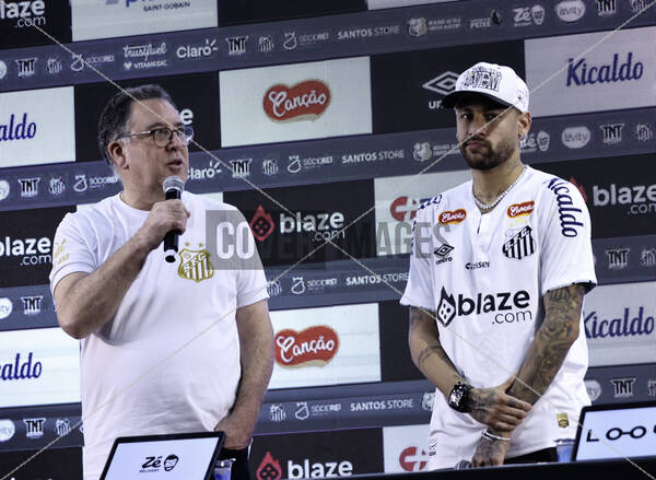Headline: Neymar jr gives press conference after signing contract with santos.Neymar Jr Makes Emotional Return To Santos FC