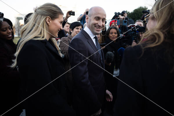 Stephen Miller, White House Deputy Chief of Staff for Policy and US Homeland Security Advisor, talks to reporters outside of the West Wing of the White House