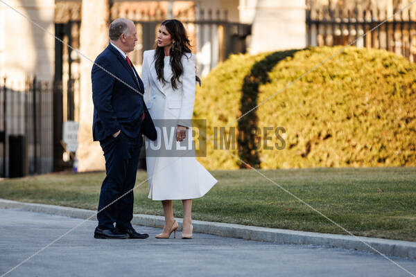 Secretary of Homeland Security (DHS) Kristi Noem with Tom Homan, President Trump’s Border Czar, seen after giving a television interview in front of the West Wing of the White House