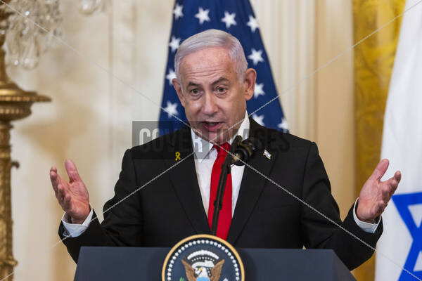 Israeli Prime Minister Benjamin Netanyahu speaks at a press conference with US President Donald Trump (not pictured) in the East Room of the White House in Washington, DC 04 February 2025. President Trump said that the he wants the US to take an ‘ownership position’ of Gaza.