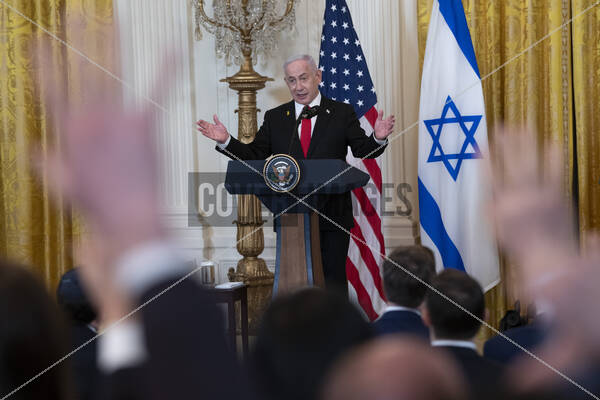 United States President Donald J Trump and Prime Minister Benjamin Netanyhu of Israel hold a news conference at the White House in Washington, DC