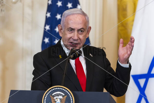 Israeli Prime Minister Benjamin Netanyahu speaks at a press conference with US President Donald Trump (not pictured) in the East Room of the White House in Washington, DC 04 February 2025. President Trump said that the he wants the US to take an ‘ownership position’ of Gaza.