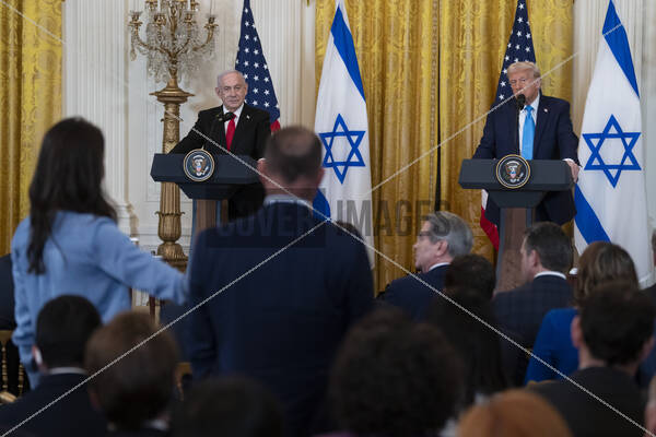 United States President Donald J Trump and Prime Minister Benjamin Netanyhu of Israel hold a news conference at the White House in Washington, DC