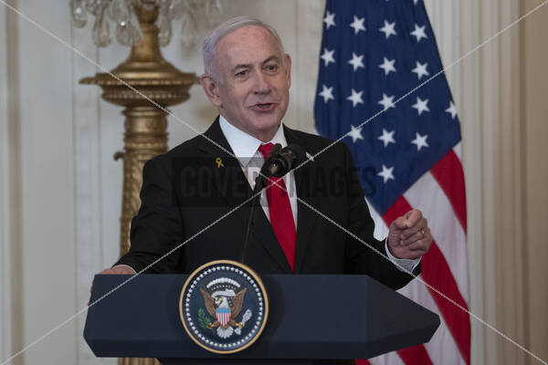 Prime Minister Benjamin Netanyhu of Israel participates in a news conference with United States President Donald J Trump at the White House in Washington, DC