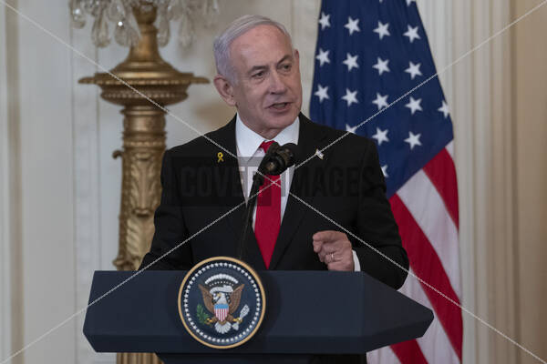 Prime Minister Benjamin Netanyhu of Israel participates in a news conference with United States President Donald J Trump at the White House in Washington, DC