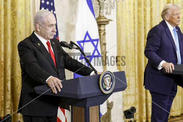 Israeli Prime Minister Benjamin Netanyahu (L) and US President Donald J. Trump (R) during a joint press conference in the East Room of the White House in Washington, DC, USA, 04 February 2025. President Trump, who is hosting his first in-person meeting with another world leader since returning to the White House, and Prime Minister Netanyahu are set to discuss the Israeli cease-fire with Hamas, Iran’s nuclear program and future arms shipments, among other bilateral issues.