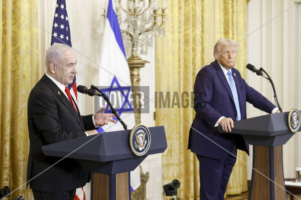 Israeli Prime Minister Benjamin Netanyahu (L) and US President Donald J. Trump (R) during a joint press conference in the East Room of the White House in Washington, DC, USA, 04 February 2025. President Trump, who is hosting his first in-person meeting with another world leader since returning to the White House, and Prime Minister Netanyahu are set to discuss the Israeli cease-fire with Hamas, Iran’s nuclear program and future arms shipments, among other bilateral issues.