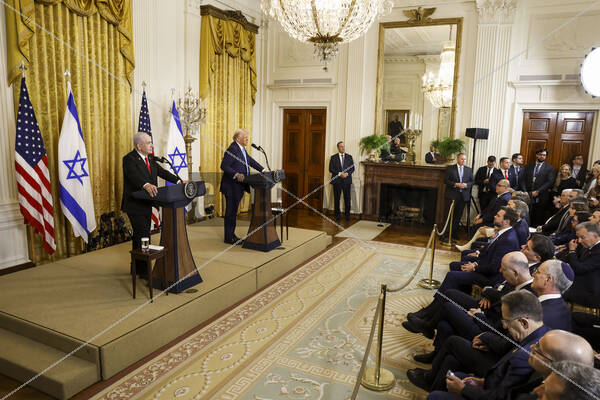 Israeli Prime Minister Benjamin Netanyahu (L) and US President Donald J. Trump (R) during a joint press conference in the East Room of the White House in Washington, DC, USA, 04 February 2025. President Trump, who is hosting his first in-person meeting with another world leader since returning to the White House, and Prime Minister Netanyahu are set to discuss the Israeli cease-fire with Hamas, Iran’s nuclear program and future arms shipments, among other bilateral issues.