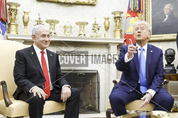 Israeli Prime Minister Benjamin Netanyahu (L) and US President Donald J. Trump (R) talk with reporters in the Oval Office of the White House in Washington, DC, USA, 04 February 2025. President Trump, who is hosting his first in-person meeting with another world leader since returning to the White House, and Prime Minister Netanyahu are set to discuss the Israeli cease-fire with Hamas, Iran’s nuclear program and future arms shipments, among other bilateral issues.