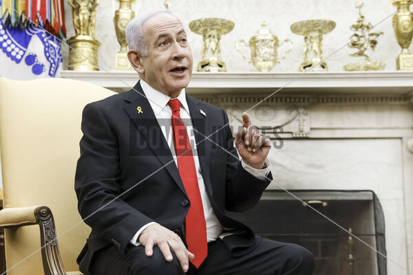 Israeli Prime Minister Benjamin Netanyahu during a meeting with US President Donald J. Trump in the Oval Office of the White House in Washington, DC, USA, 04 February 2025. President Trump, who is hosting his first in-person meeting with another world leader since returning to the White House, and Prime Minister Netanyahu are set to discuss the Israeli cease-fire with Hamas, Iran’s nuclear program and future arms shipments, among other bilateral issues.