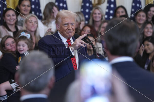 United States President Donald J Trump participates in a ceremony for “No Men in Women’s Sports Executive Order Signing” at the White House in Washington