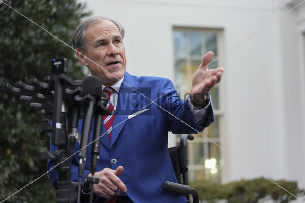 Governor Greg Abbott (Republican of Texas) speaks to the media after meeting in the Oval Office with United States President Donald J Trump, outside the West Wing of the White House
