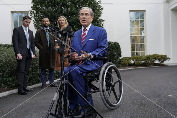 Governor Greg Abbott (Republican of Texas) speaks to the media after meeting in the Oval Office with United States President Donald J Trump, outside the West Wing of the White House